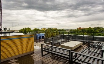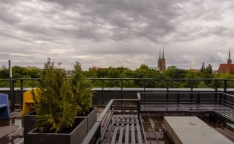 Na terenie osiedla zadbano także o system umożliwiający mobilne otwieranie drzwi, wind i bramy wjazdowej do garażu oraz ekologiczne rozwiązania: zbiornik retencyjny wody opadowej, nawiewniki antysmogowe, zielony dach i oświetlenie LED.