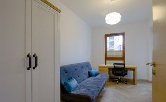 Apartament w wysokim standardzie wykończenia, w pięknym stylu, w jasnych kolorach. Kuchnia wyposażona w sprzęt AGD (płyta indukcyjna, zmywarka, piekarnik, lodówka, okap). W salonie klimatyzacja. 2 łazienki z czego jedna z prysznicem a druga z wanną i prysznicem. Na podłodze w kuchni, przedpokoju oraz łazienkach gres, natomiast w pokojach wysokiej klasy panele podłogowe. Sypialnia z dużym łożem małżeńskim oraz z szafą. Nowoczesne oświetlenie LED w całym mieszkniu.